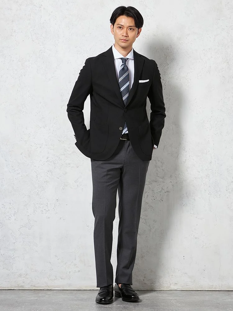 切り込みが2本のサイドベンツ仕様のアイテムです。クラシックでエレガントな印象を与えます。