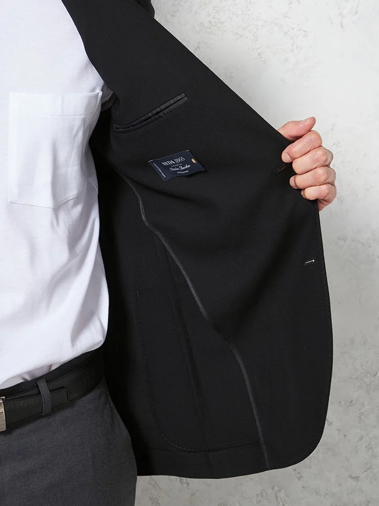 【ウール100%】ジャケット 2つボタン ブレザー【REDA社製生地】ブラック 無地