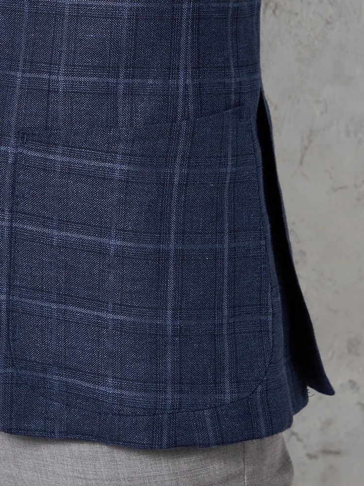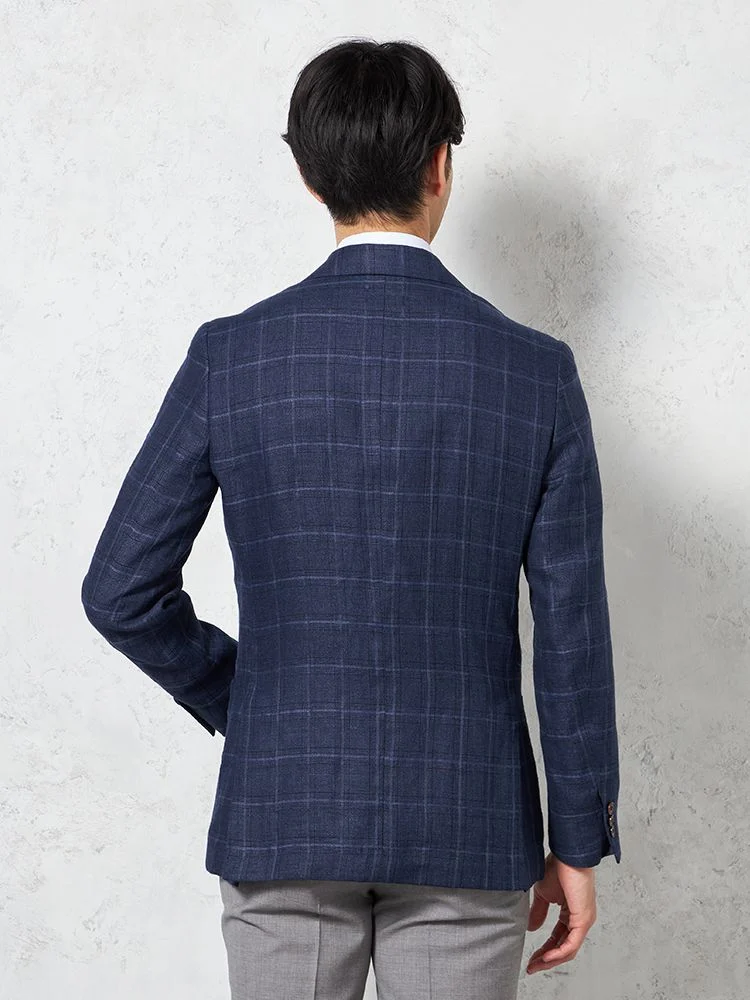 【軽量】ジャケット 2つボタン リネン混【REDA社製生地】ネイビー チェック RUCKEN BACCHAR 春夏