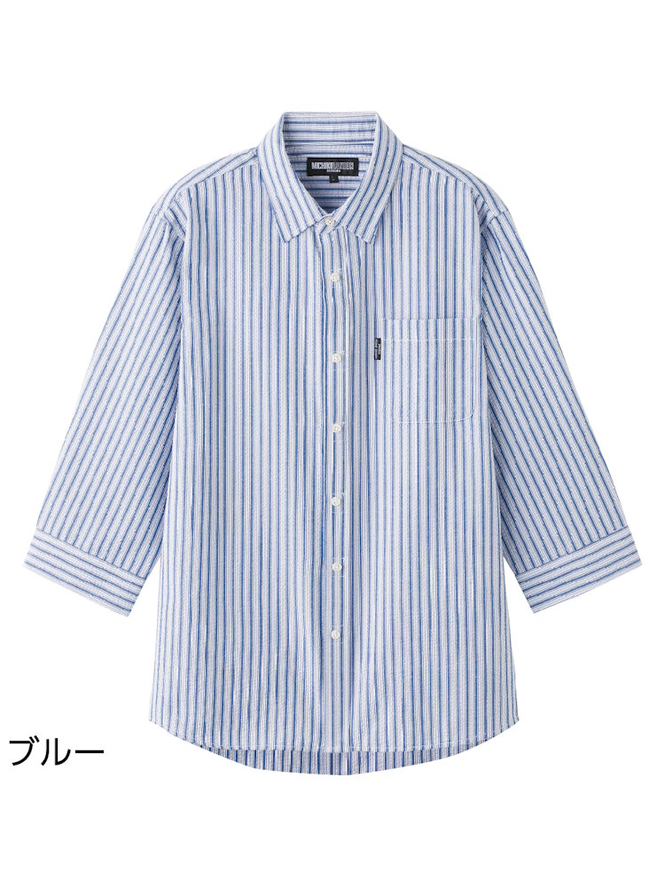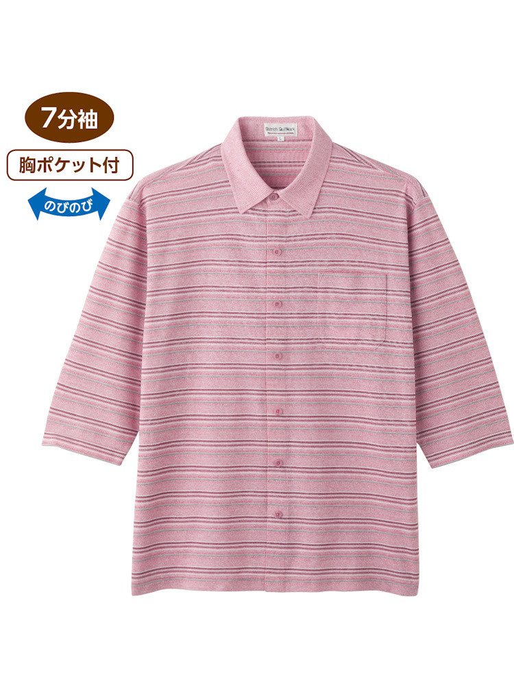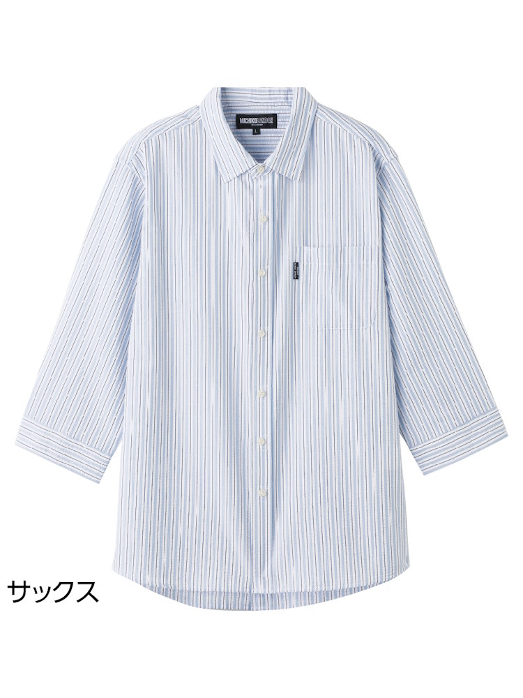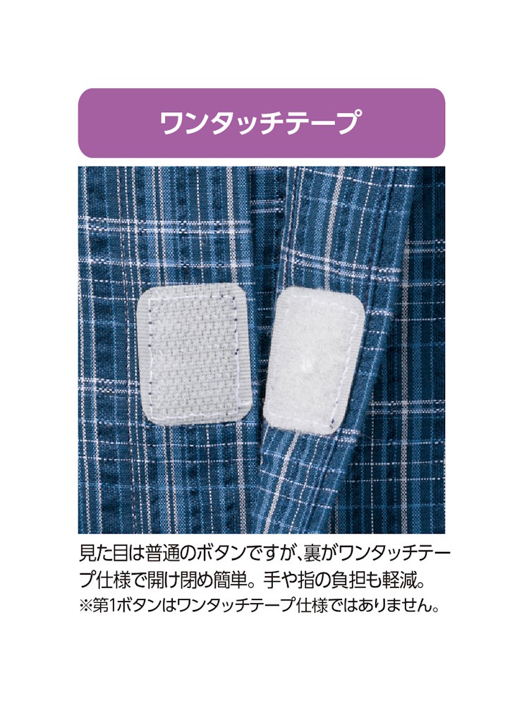 サッカーワンタッチテープ7分袖シャツ/紳士用/メンズ/前開き/ギフト/プレゼント/ワンタッチテープ/着やすい/おしゃれ/シニア/高齢者 【CF】(サックス)