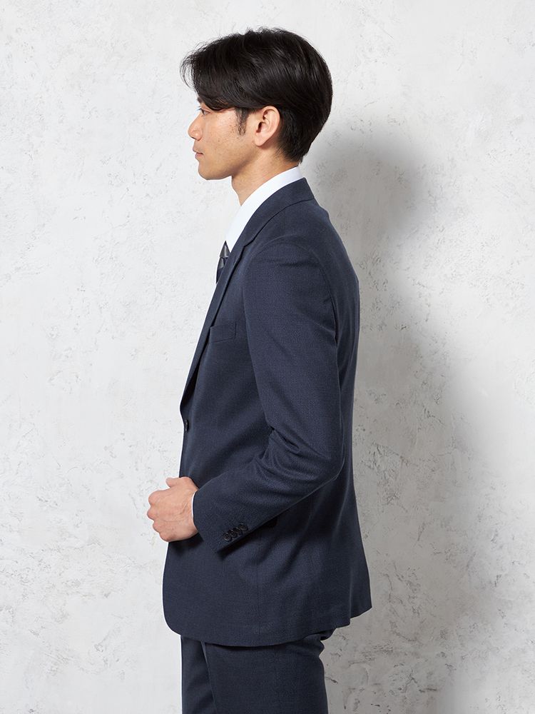 スタイリッシュに着こなせるスリムシルエットを採用、本格的な縫製で夏用のスーツでもドレス見えが可能です。