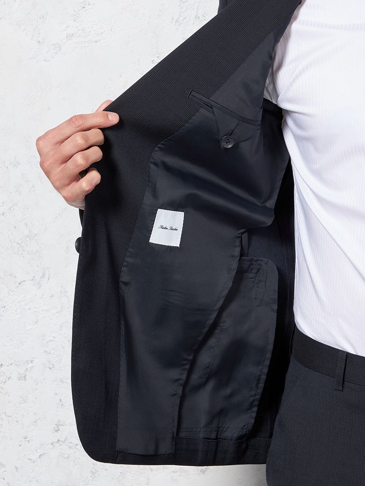 切り込みが1本のセンターベントデザインです。細身でスッキリとしたシルエットが特徴で、快適な着心地を提供します
