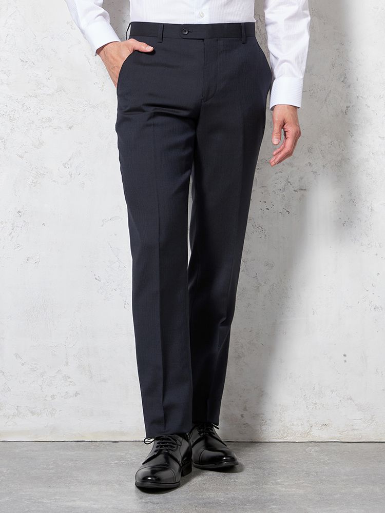 パンツの腰回りに生地の折り込みがなく、スッキリとしたシルエットを実現します。シンプルで洗練された印象を与え、すっきりとした着こなしが可能です。