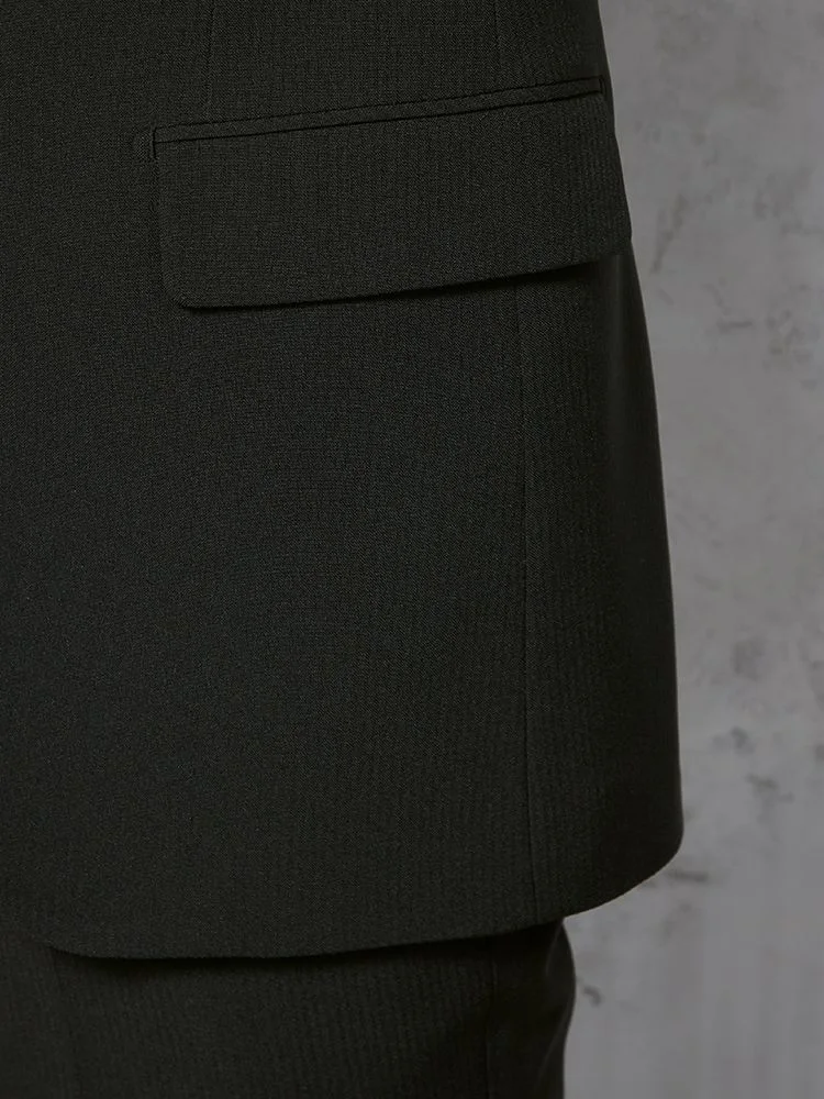 切り込みが1本のセンターベントデザインです。細身でスッキリとしたシルエットが特徴で、快適な着心地を提供します
