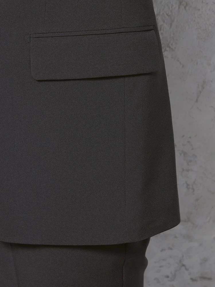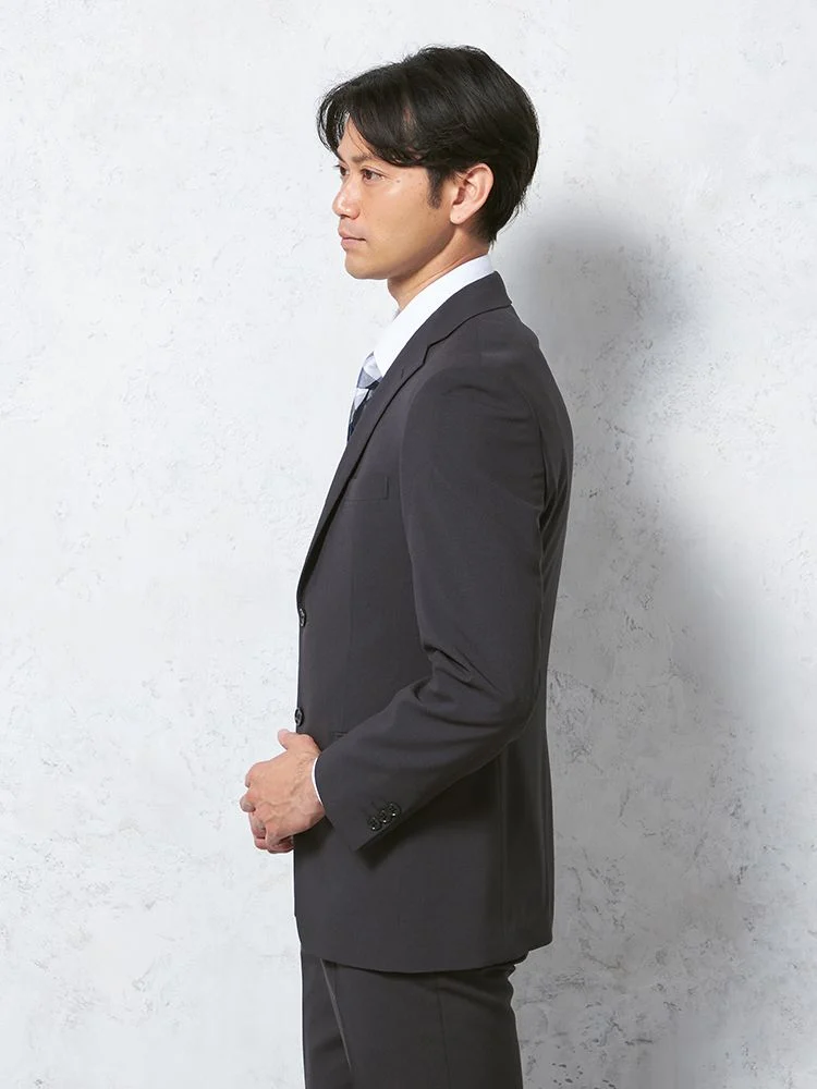 切り込みが1本のセンターベントデザインです。細身でスッキリとしたシルエットが特徴で、快適な着心地を提供します