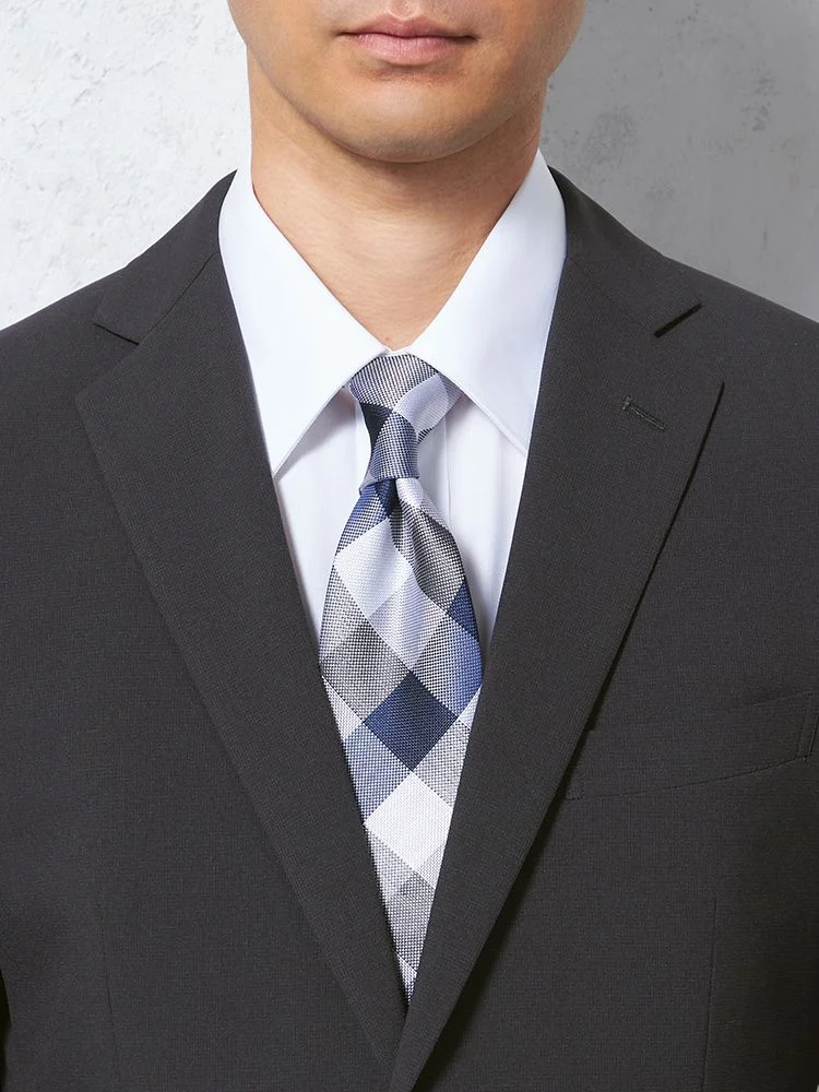 【即納】スーツ2つボタン【WEB限定】4WAYストレッチ織柄チャコールグレー通年