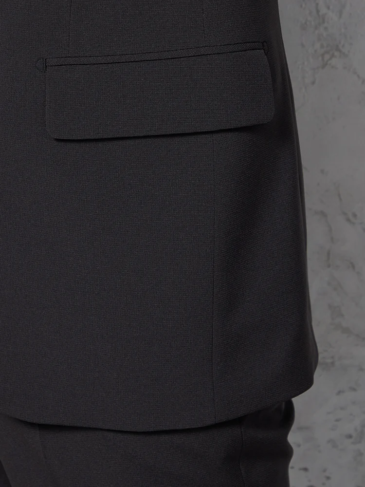 切り込みが1本のセンターベントデザインです。細身でスッキリとしたシルエットが特徴で、快適な着心地を提供します