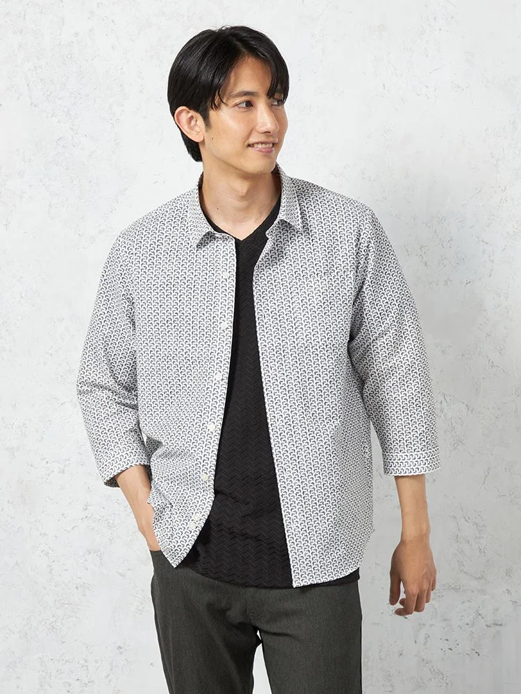 【RUCKENBACCHAR】半袖ポロシャツ衿裏配色幾何学ジャガードカジュアルインナー春夏
