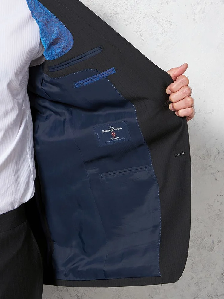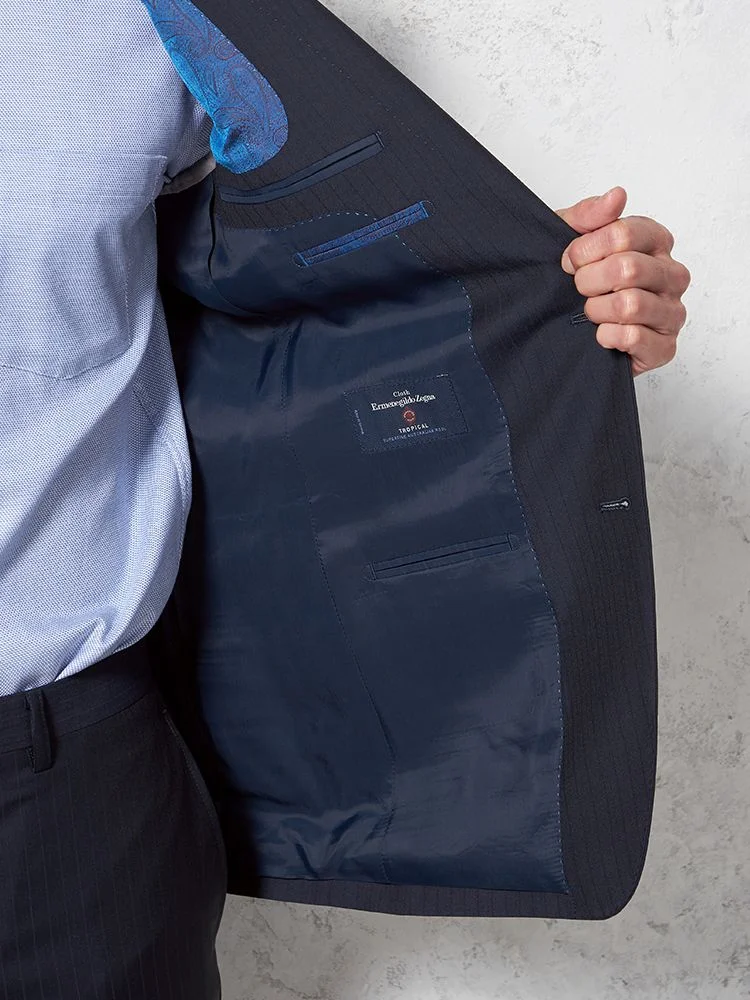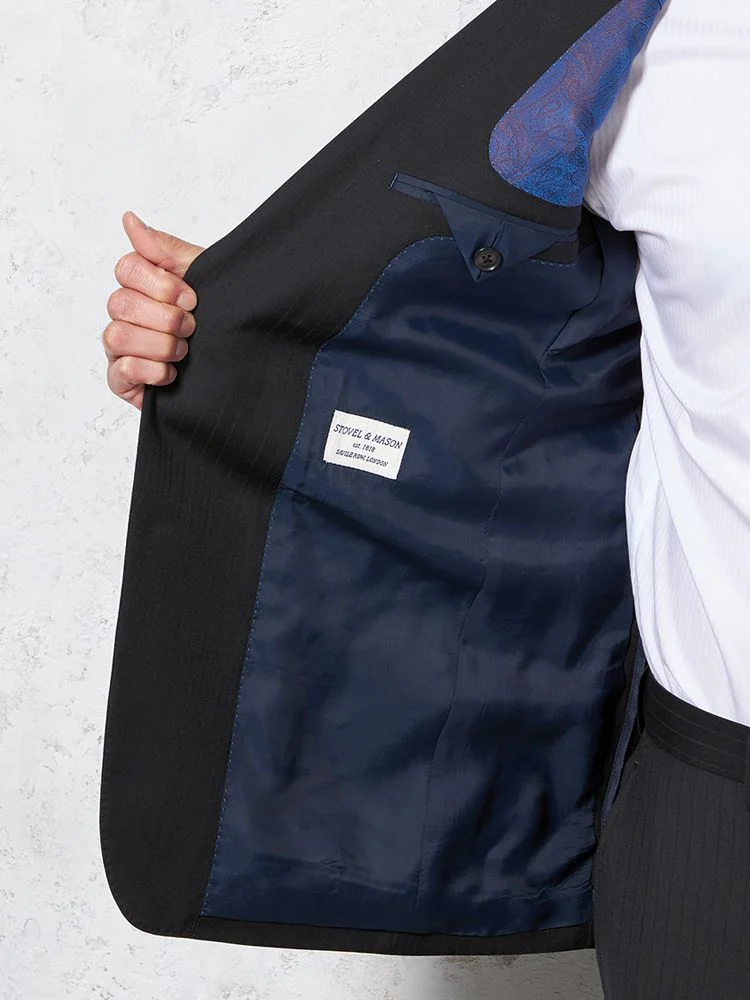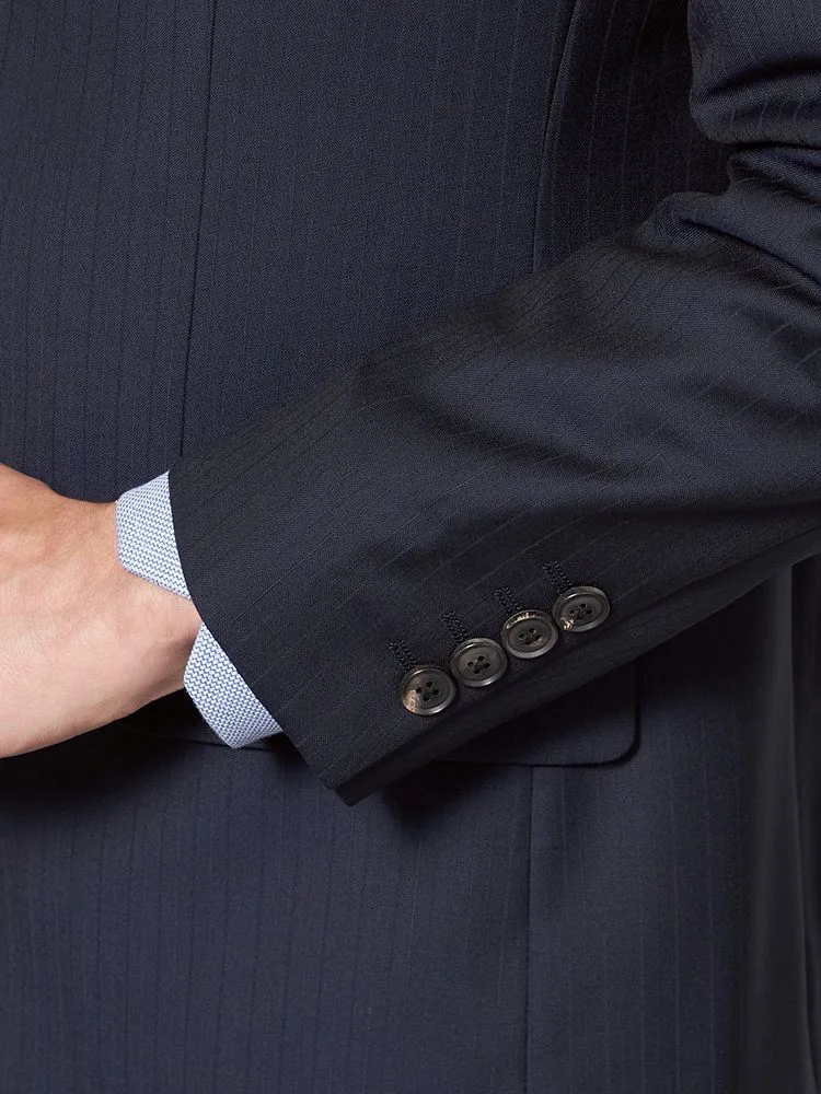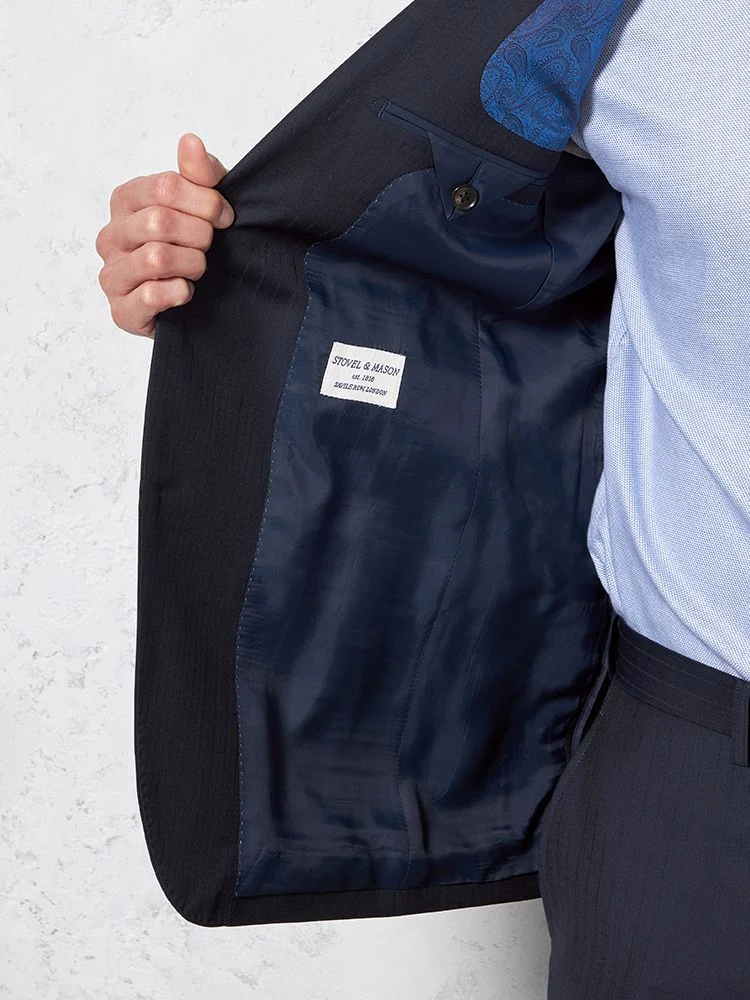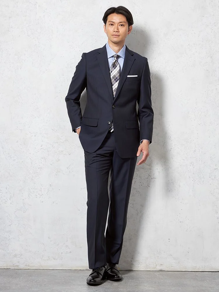 【イタリア製高級生地使用(ゼニア)】スーツ2つボタンウール100%ネイビー無地STOVEL&MASON