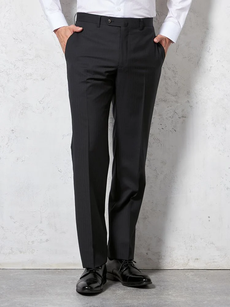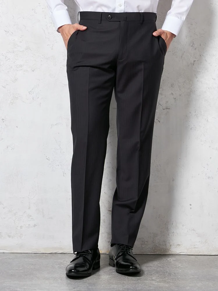 パンツの腰回りに生地の折り込みがなく、スッキリとしたシルエットを実現します。シンプルで洗練された印象を与え、すっきりとした着こなしが可能です。