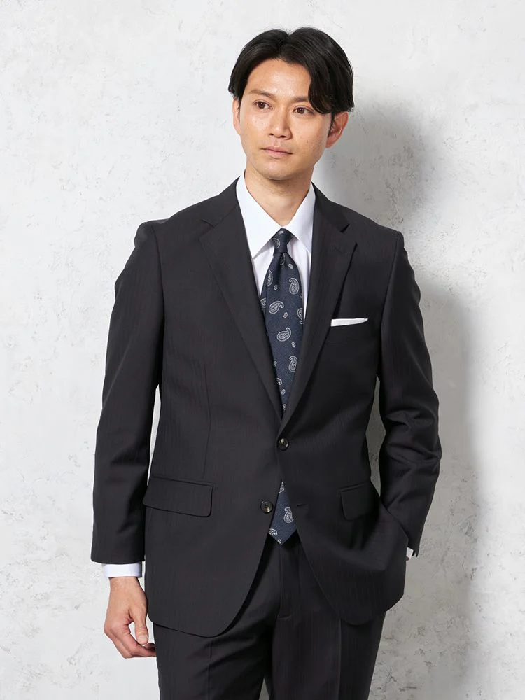 【ウール100%】スーツ2つボタン尾州SUPER110s素材ヘリンボンSTOVEL&MASON秋冬