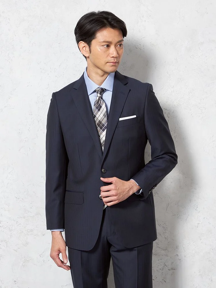 【ウール100%】スーツ2つボタン尾州素材使用ストライプSTOVEL&MASON秋冬