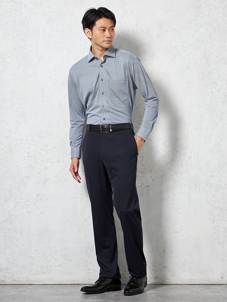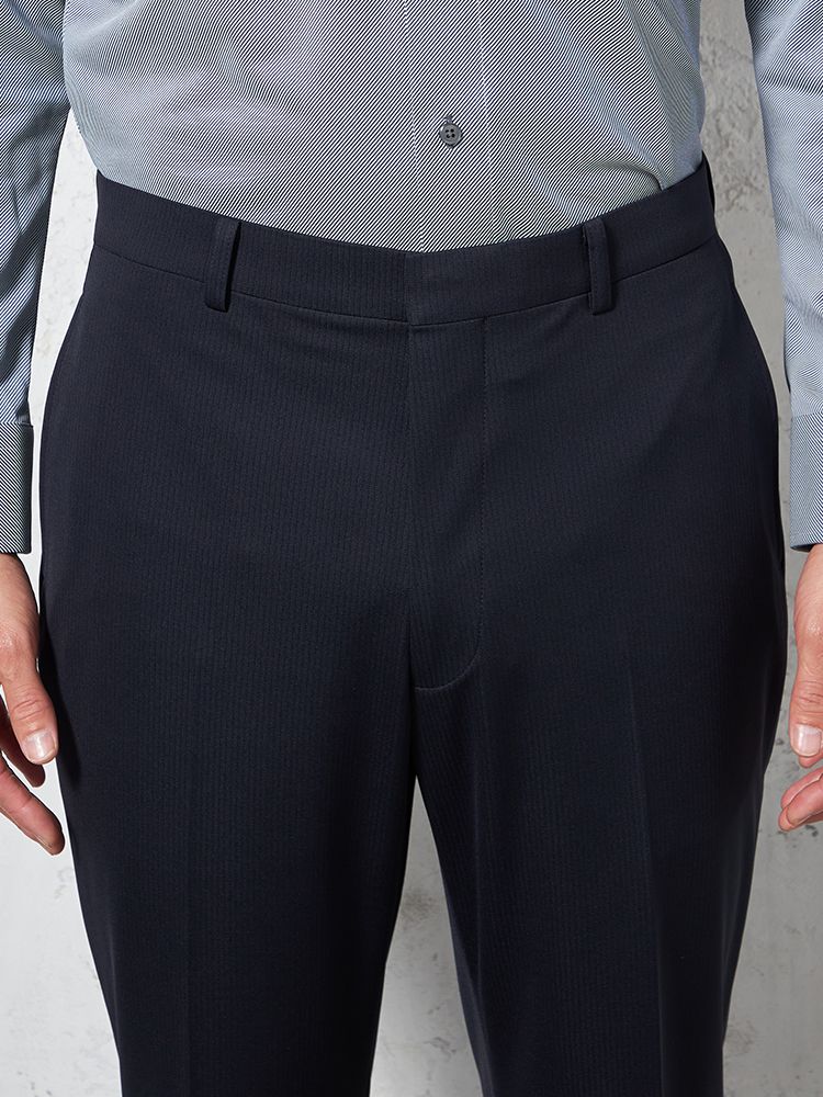 【i-Pants-アイパンツ-】バイオセンサー生地使用【スリム】ノータックシャドウストライプスラックスnero