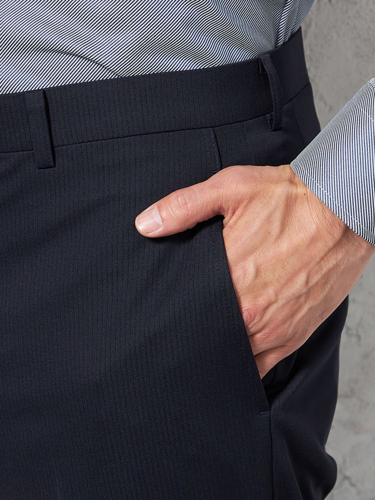 【i-Pants-アイパンツ-】バイオセンサー生地使用【レギュラー】ノータック ストライプ スラックス リッケンバッカー(ネイビー)