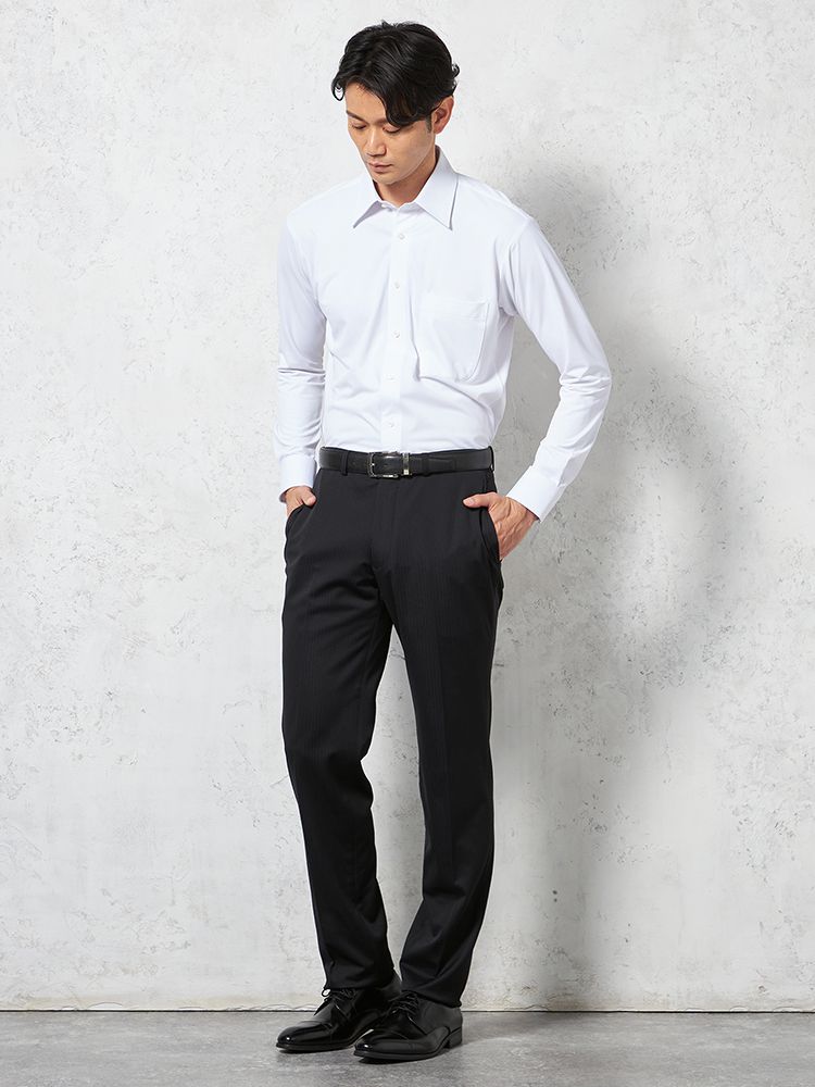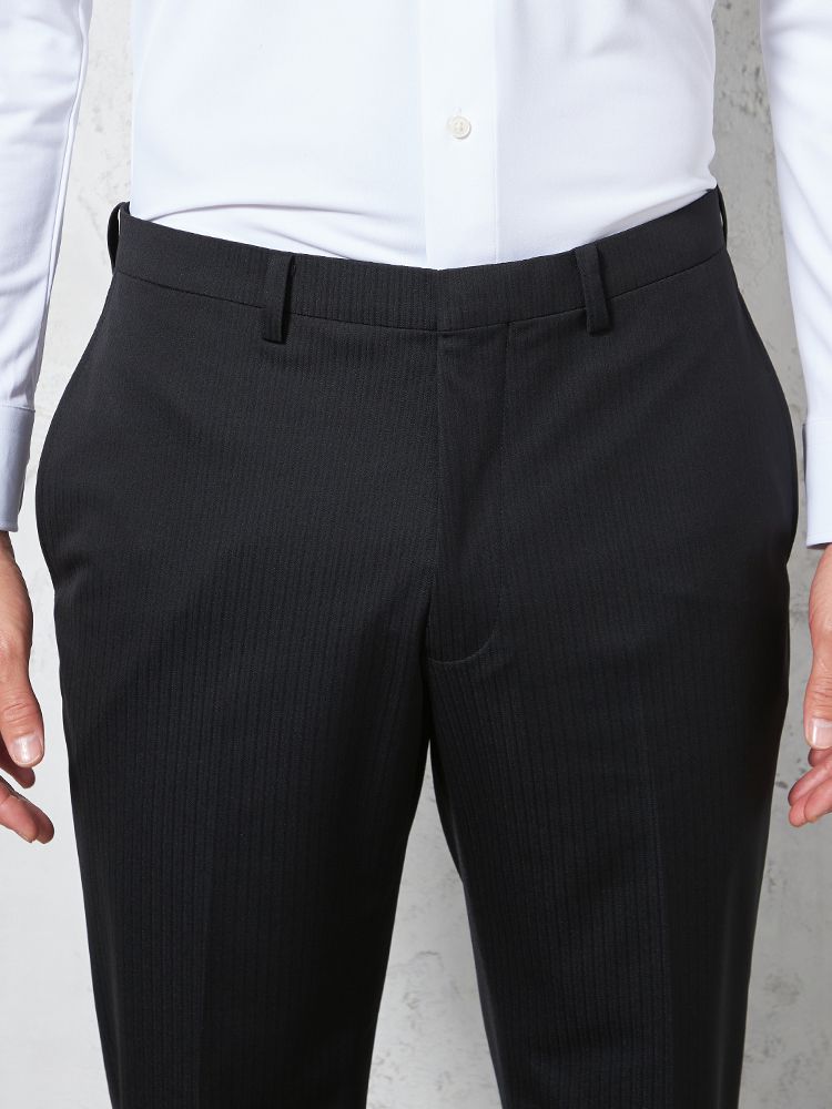【i-Pants-アイパンツ-】バイオセンサー生地使用ウォッシャブルノータックストライプスラックスnero