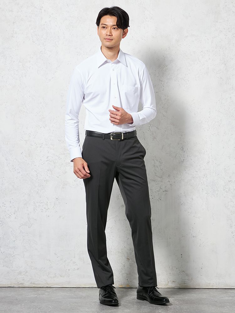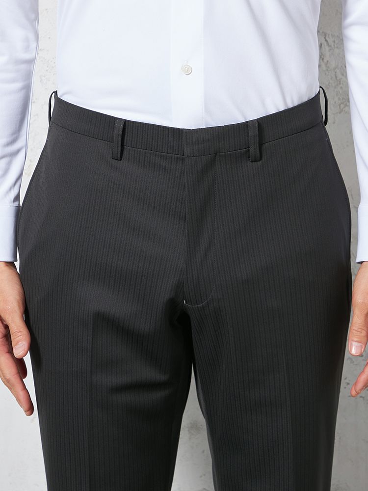 【i-Pants-アイパンツ-】バイオセンサー生地使用【スリム】ノータック シャドウストライプ スラックス nero(M.グレー)