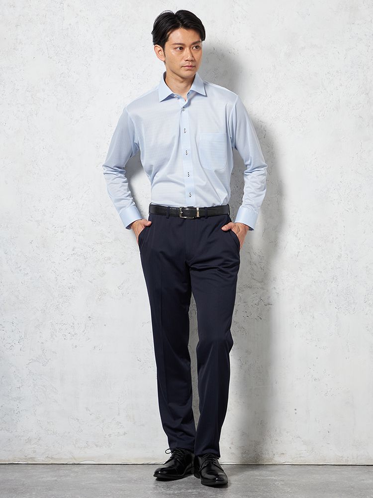 【i-Pants-アイパンツ-】バイオセンサー生地使用【レギュラー】ノータックストライプスラックスリッケンバッカー