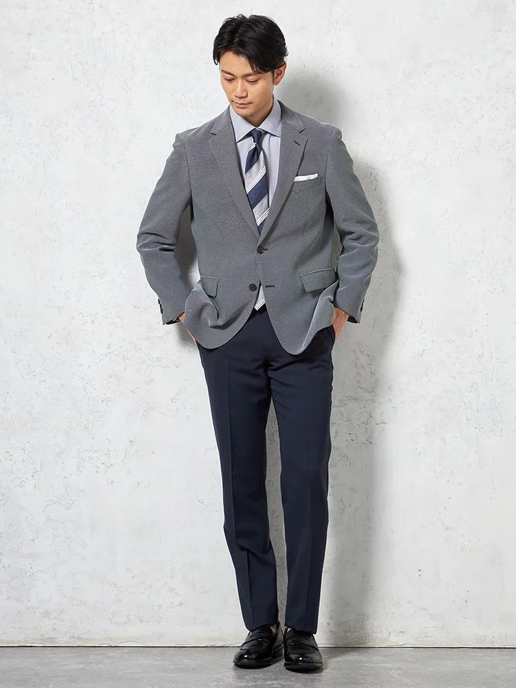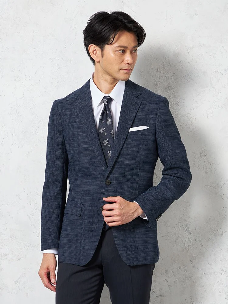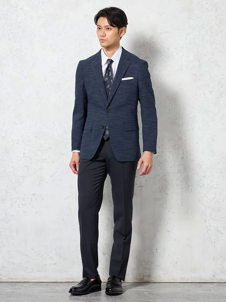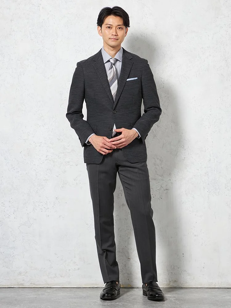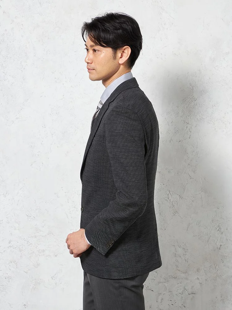 切り込みが1本のセンターベントデザインです。細身でスッキリとしたシルエットが特徴で、快適な着心地を提供します