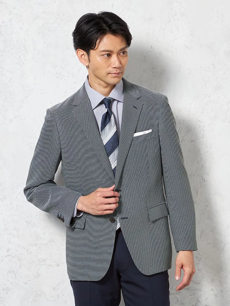 2つボタンのデザインで、クラシックなスタイルを演出。落ち着きと品のあるアイテムです。