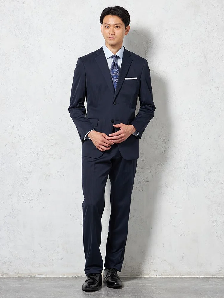 【軽量】スーツ2つボタンツーパンツ上下ウォッシャブルネイビーシャドウストライプリッケンバッカー春夏