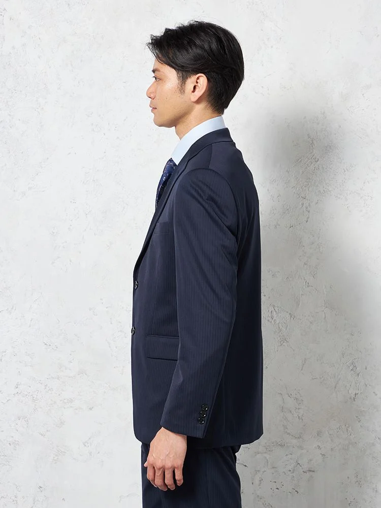 切り込みが1本のセンターベントデザインです。細身でスッキリとしたシルエットが特徴で、快適な着心地を提供します