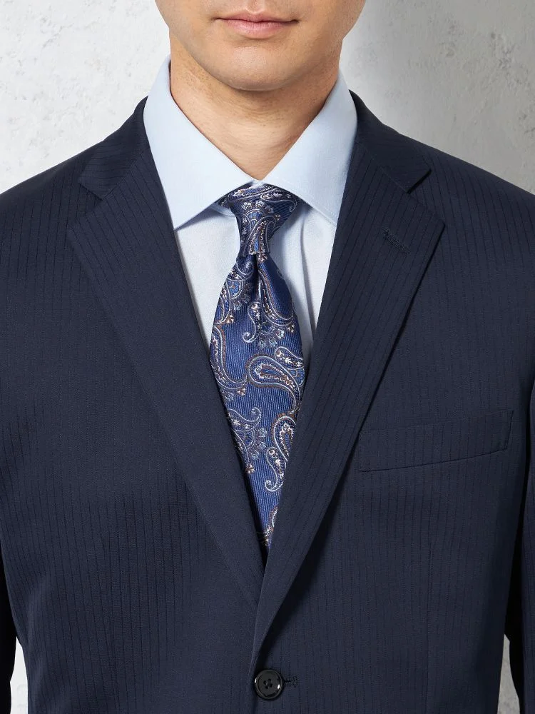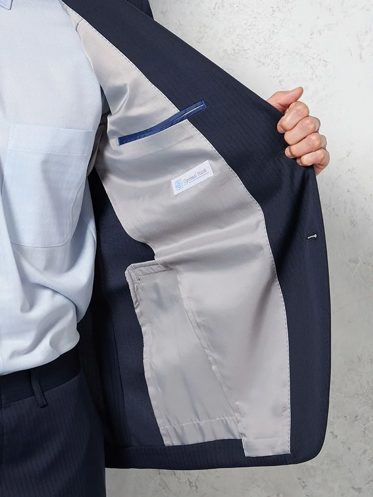 【ライトフィール】スーツ2つボタンツーパンツ上下ウォッシャブル軽量ネイビーシャドウストライプTANITA-タニタ-春夏