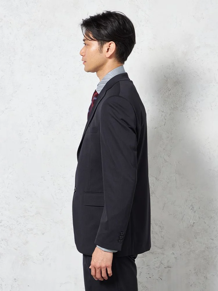 切り込みが1本のセンターベントデザインです。細身でスッキリとしたシルエットが特徴で、快適な着心地を提供します