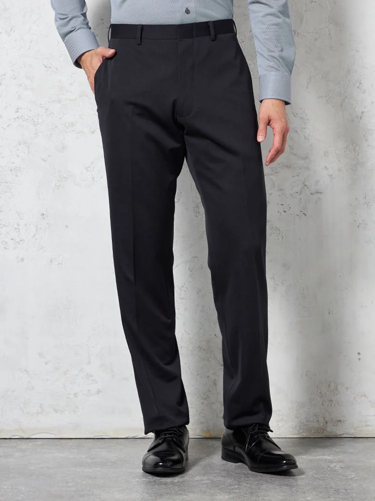 パンツの腰回りに生地の折り込みがなく、スッキリとしたシルエットを実現します。シンプルで洗練された印象を与え、すっきりとした着こなしが可能です。