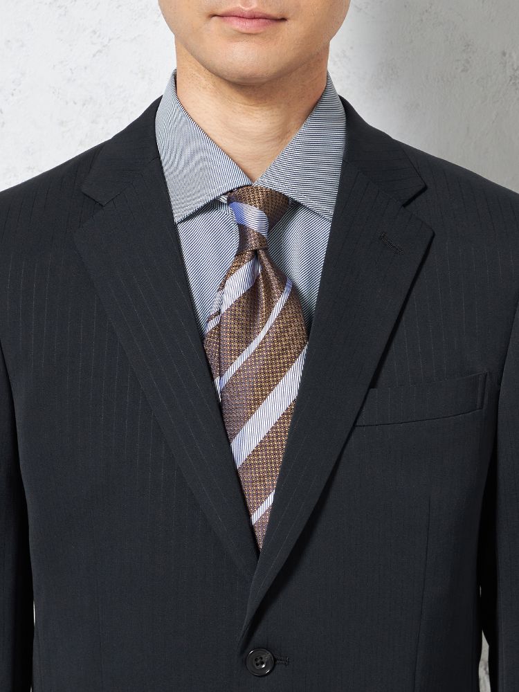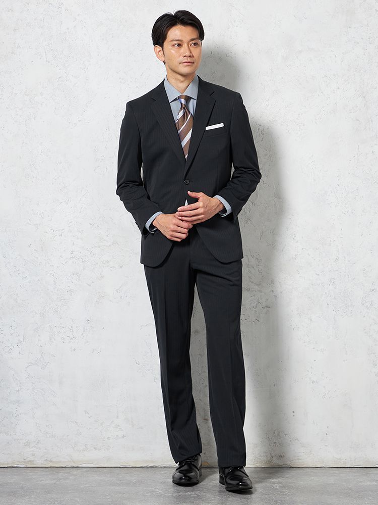 スタイリッシュに着こなせるシャドウストライプのスーツ。