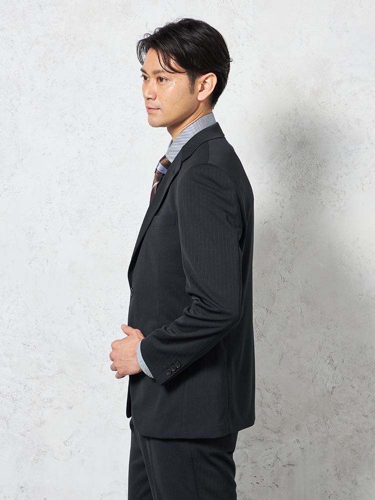 切り込みが1本のセンターベントデザインです。細身でスッキリとしたシルエットが特徴で、快適な着心地を提供します