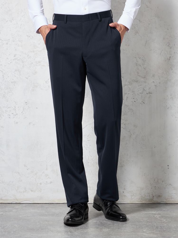パンツの腰回りに生地の折り込みがなく、スッキリとしたシルエットを実現します。シンプルで洗練された印象を与え、すっきりとした着こなしが可能です。