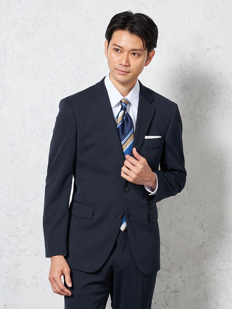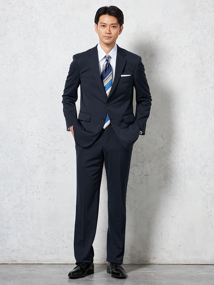 【i-Suit-アイスーツ-】スーツ 2つボタン 上下ウォッシャブル 軽量 シャドウストライプ リッケンバッカー 春夏(ネイビー)