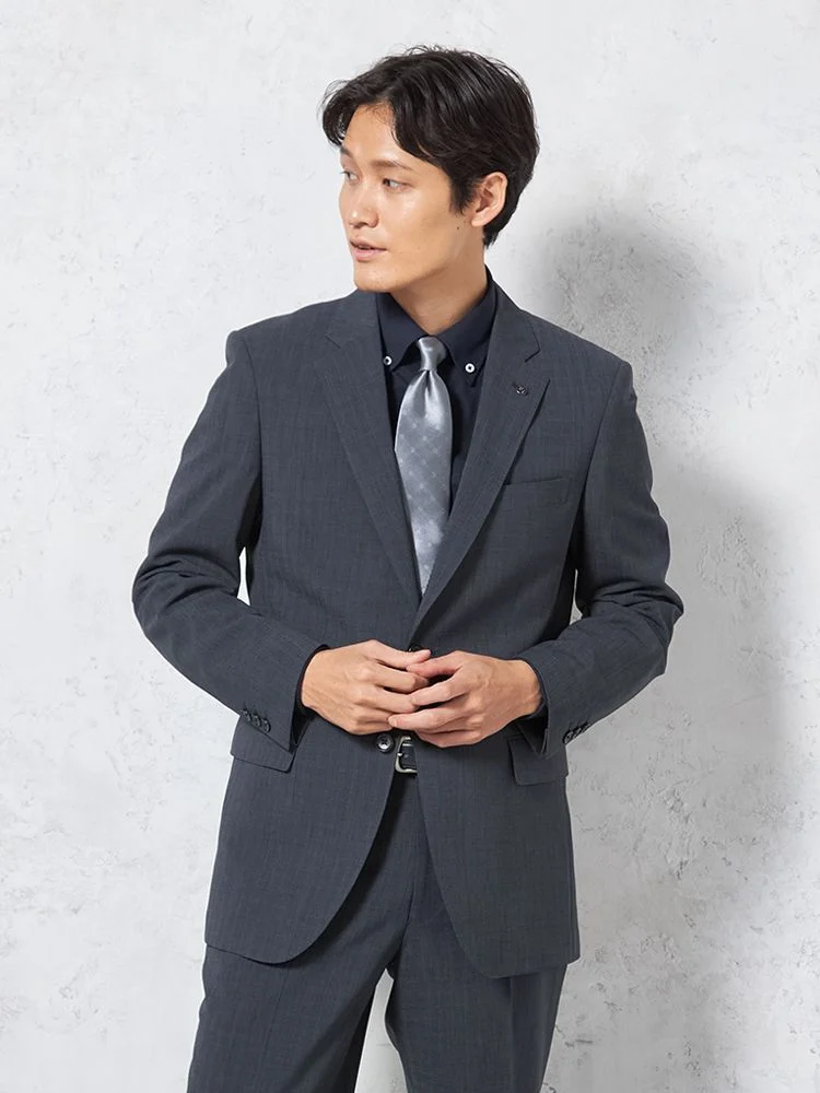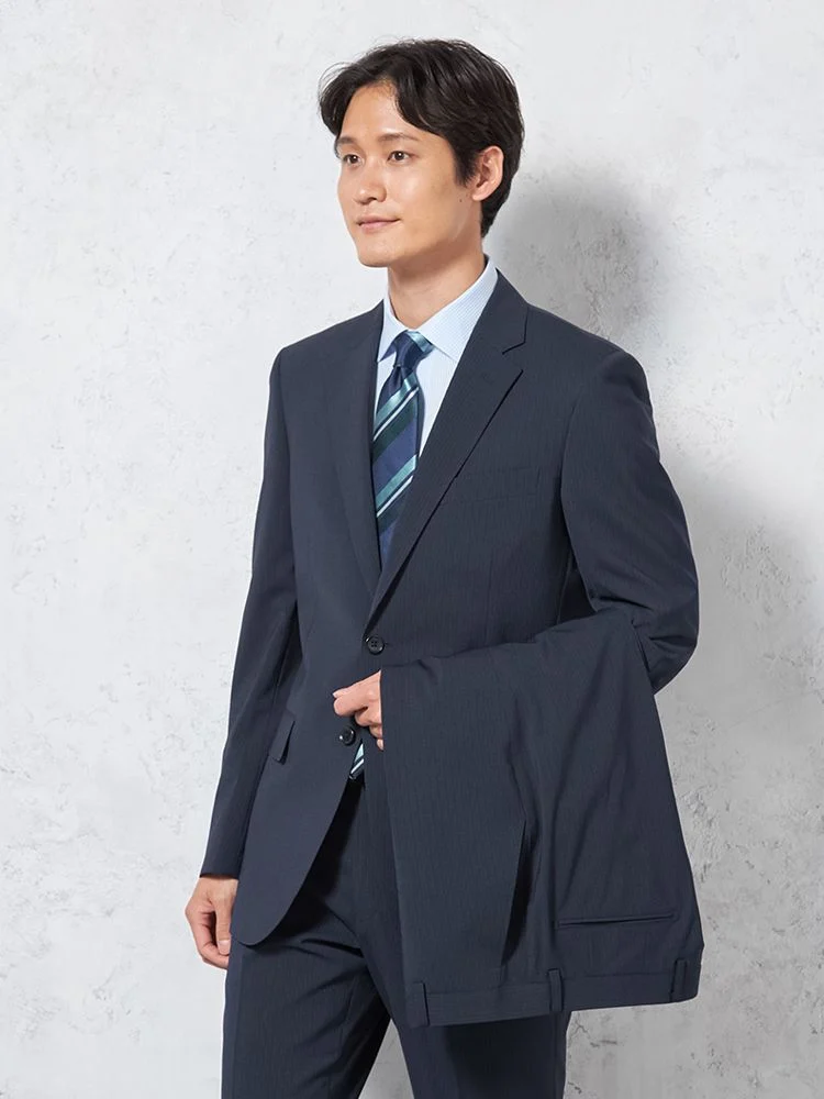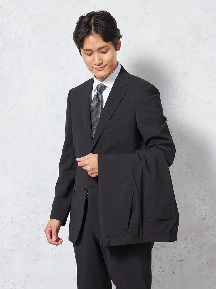 細身のシルエットのため、スタイリッシュなビジネススタイルにぴったりな一着です。
