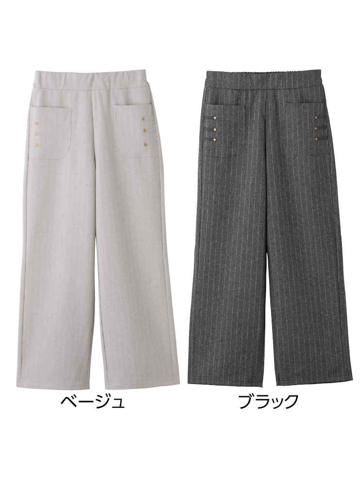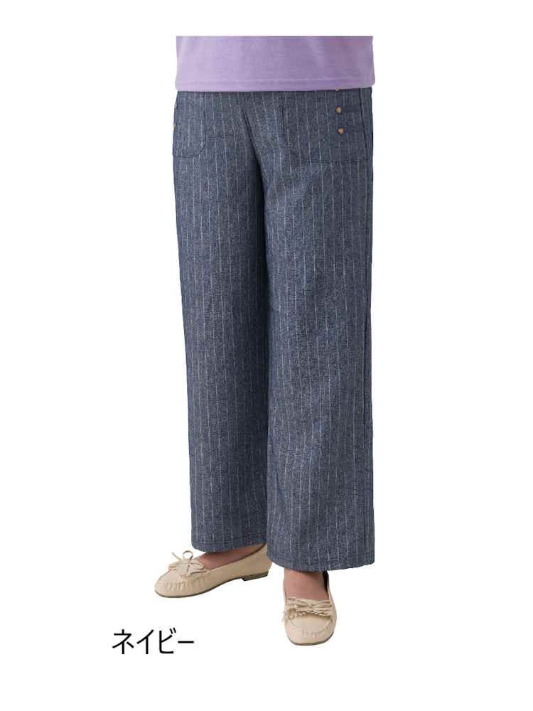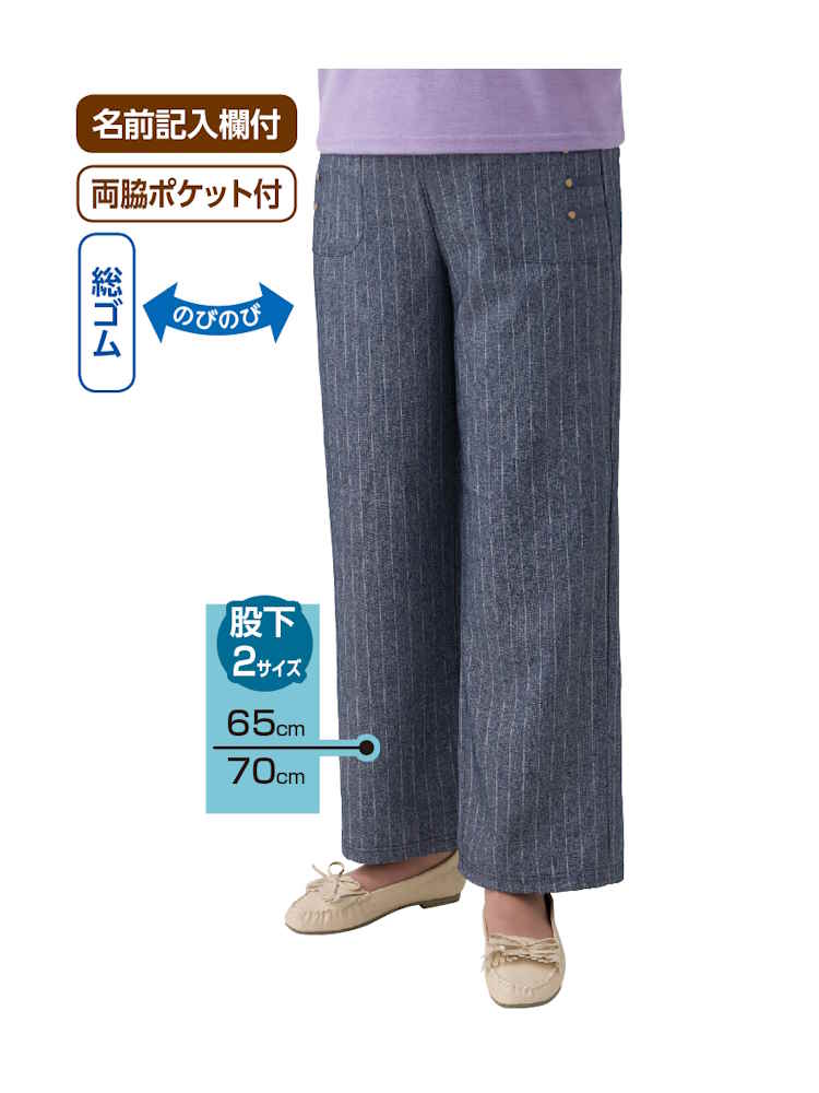 【股下70cm】【総ゴム】先染ストライプストレートパンツ股下70cm/婦人用/レディース/両脇ポケット/名前記入欄付/ストライプ/ズボン/M,L,LL,3L【CF】