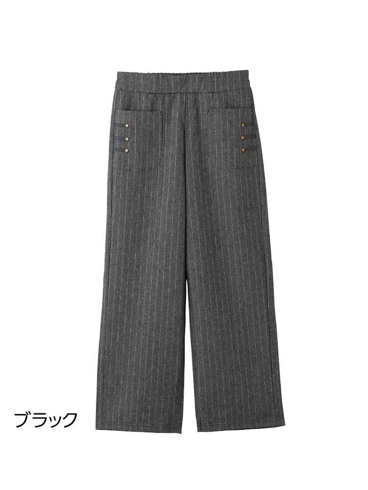【股下70cm】【総ゴム】先染ストライプストレートパンツ 股下70cm/婦人用/レディース/両脇ポケット/名前記入欄付/ストライプ/ズボン/M,L,LL,3L 【CF】(ブラック)