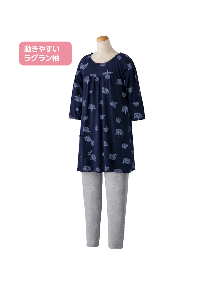 動きやすいラグラン袖。腕が上がりやすく、動かしやすいため、着脱が楽にできる安心設計です。