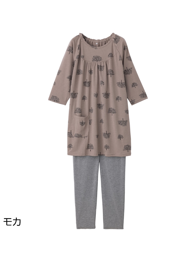 【ラグラン袖】天竺8分袖ルームウェア/婦人用/レディース/寝巻 【CF】(ブラウン)