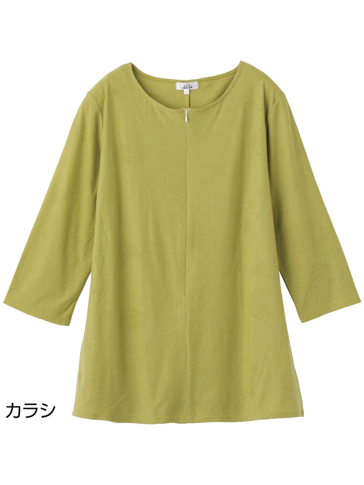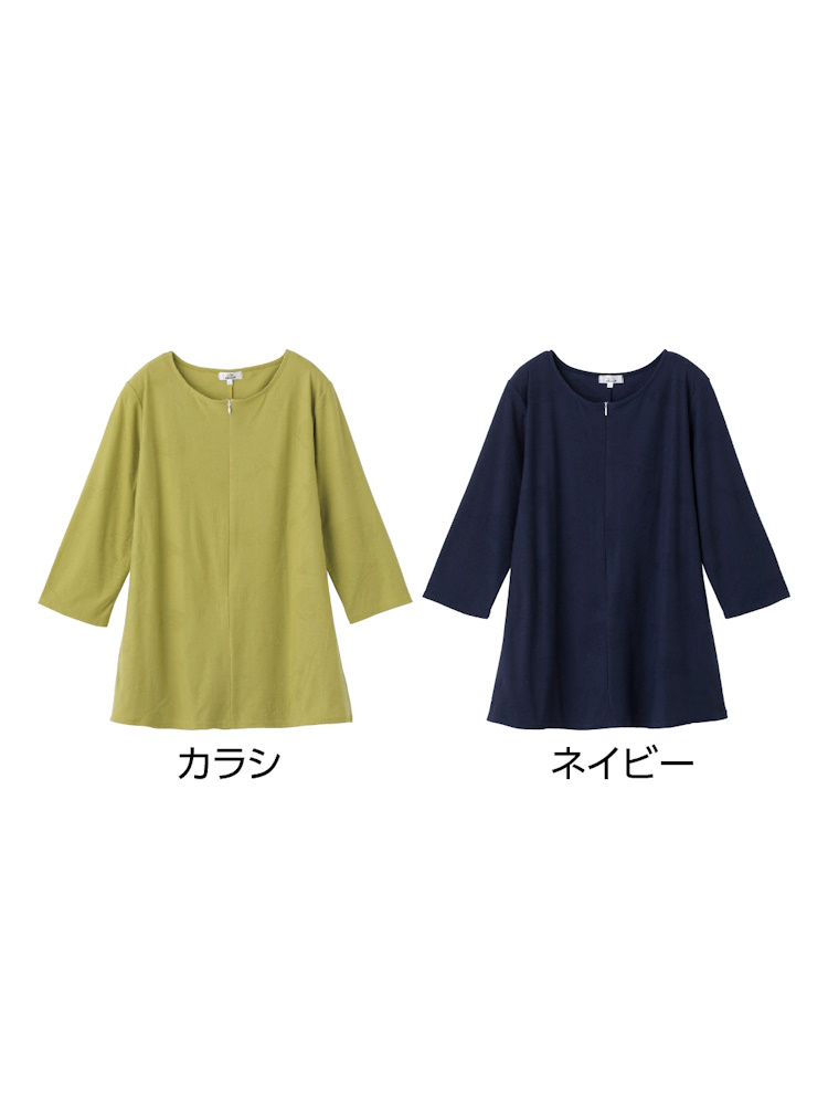8分袖ロングファスナーチュニック/婦人用/レディース/シニア/高齢者/ロングファスナー/ゆったり 【CF】(オレンジ)