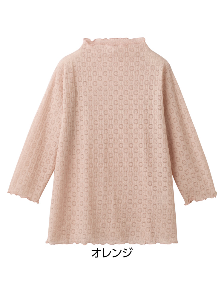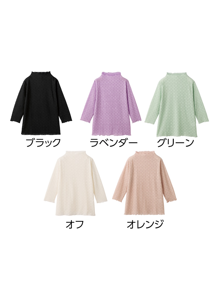 レディース 7分袖レーシージャカードTシャツ/婦人用/レディース/シニア/高齢者/ゆったり/名前記入欄付 【CF】(ブラック)