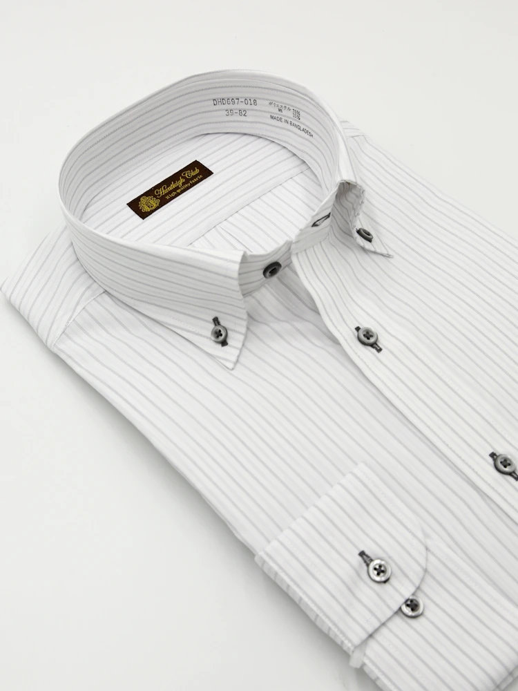 【形態安定】長袖ワイシャツセミワイドストライプハントレークラブ通年