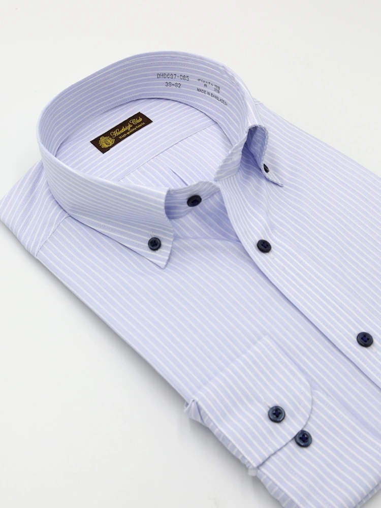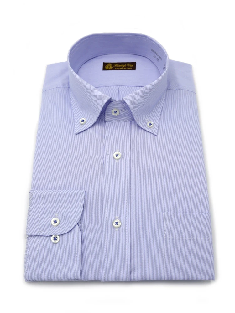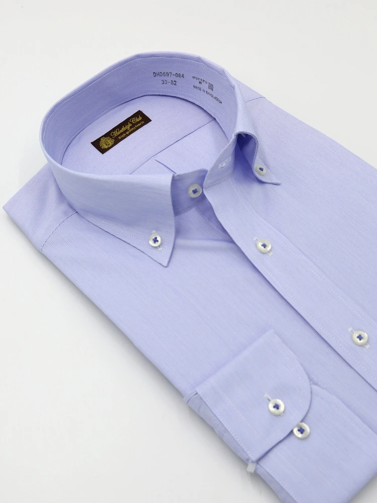 【形態安定】長袖 ワイシャツ ボタンダウン 色柄 ハントレークラブ 通年(S.ブルー)