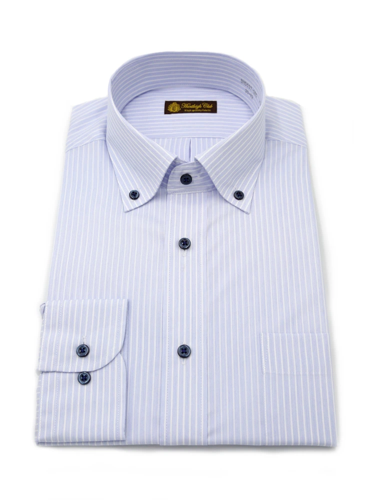 【形態安定】長袖ワイシャツボタンダウン【コットンプレミアムケア】ストライプリッケンバッカー通年