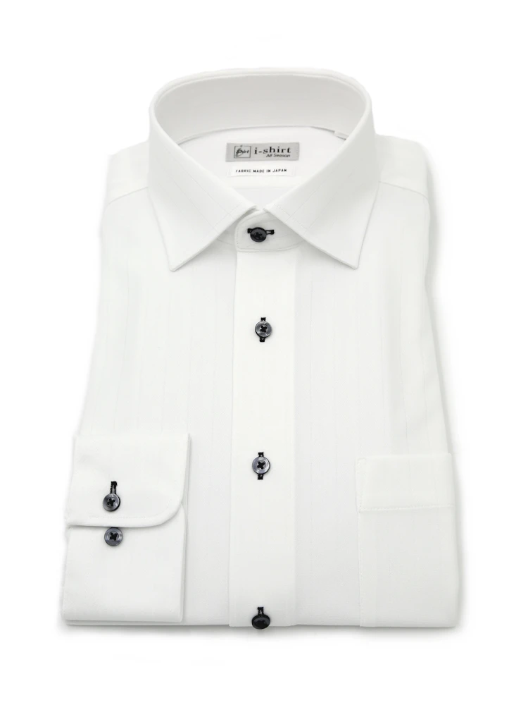 【完全ノーアイロン】長袖アイシャツセミワイド吸水速乾ストレッチツイル織柄無地ワイシャツi-shirt通年