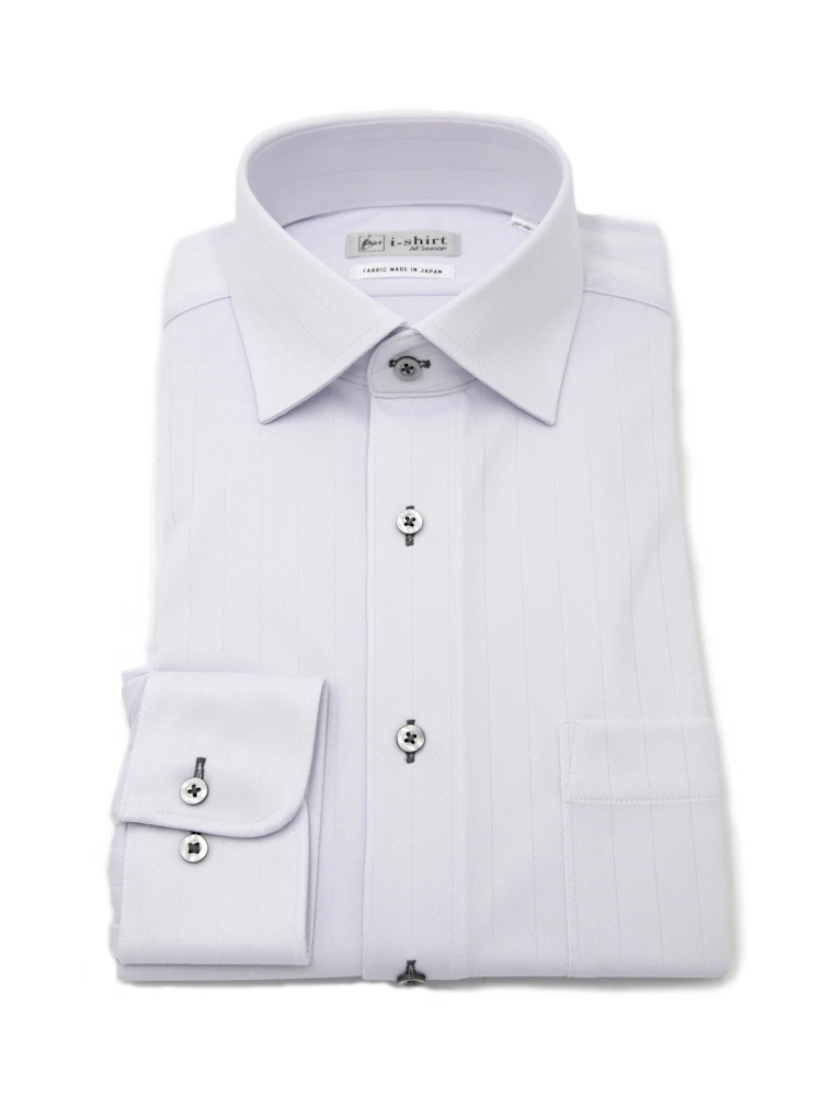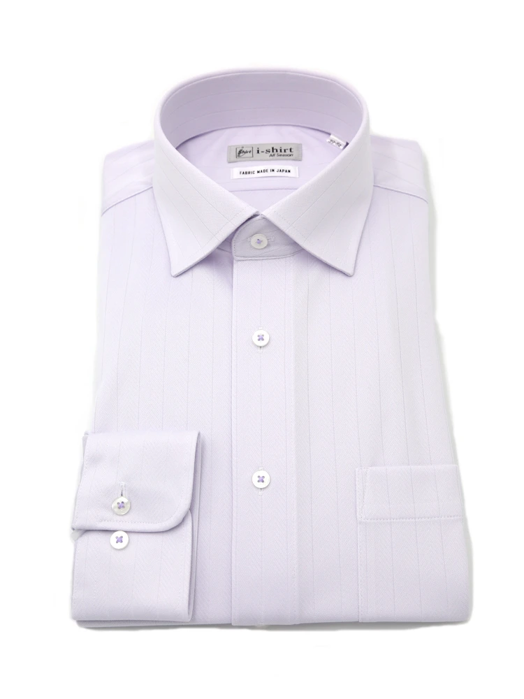 【完全ノーアイロン】長袖 アイシャツ セミワイド 防汚加工 ストレッチ ツイル 織柄無地 ワイシャツ i-shirt 通年(ラベンダー)