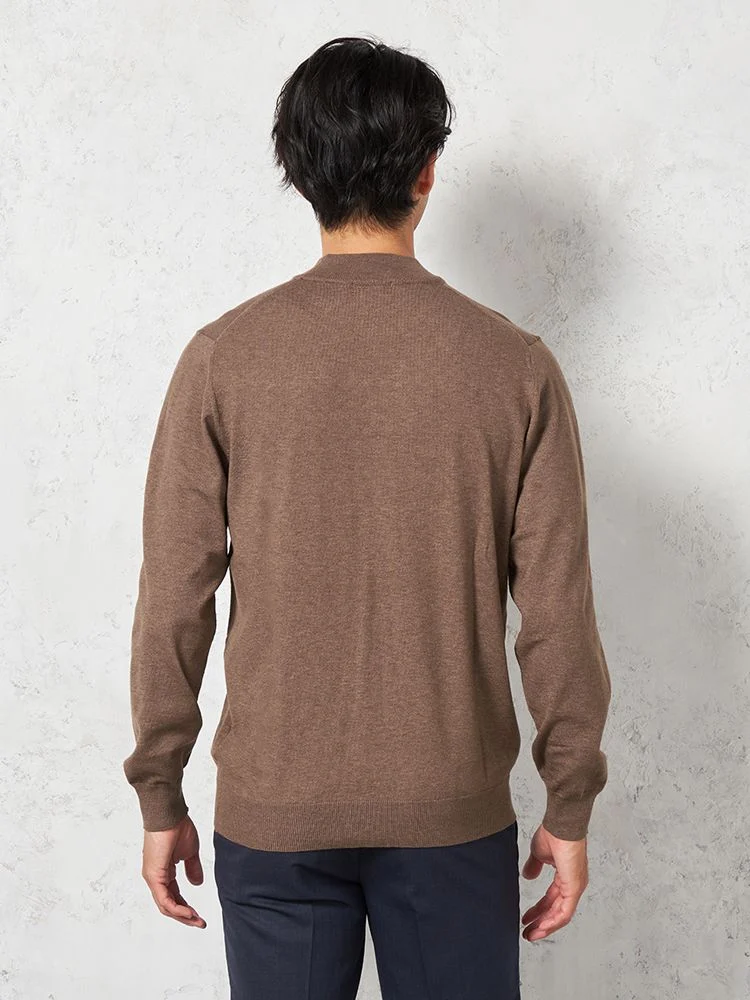 【ウォッシャブル】長袖ニットファイブミックスフルジップセーターカジュアルインナー無地リッケンバッカーブラック秋冬
