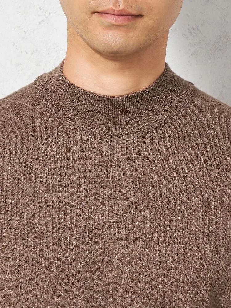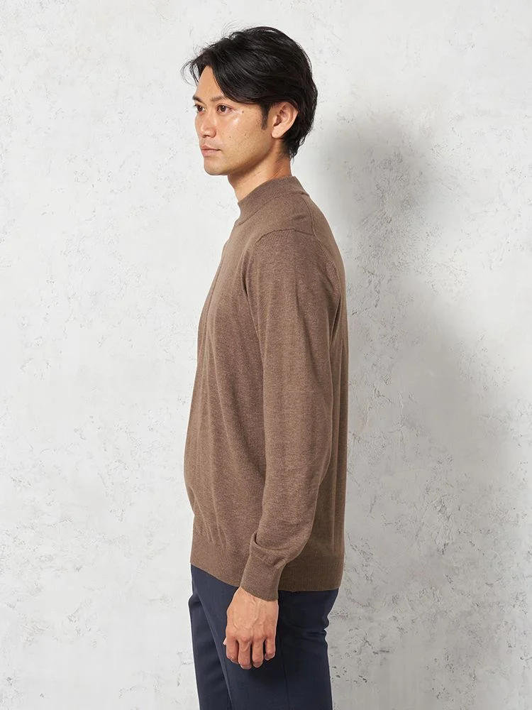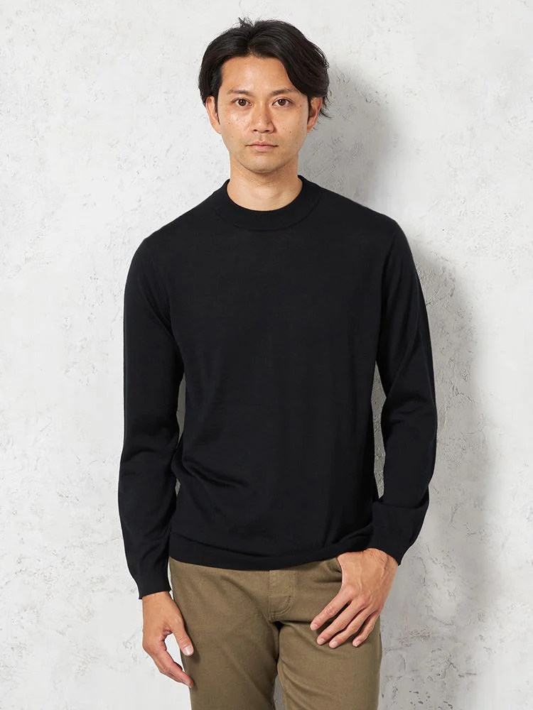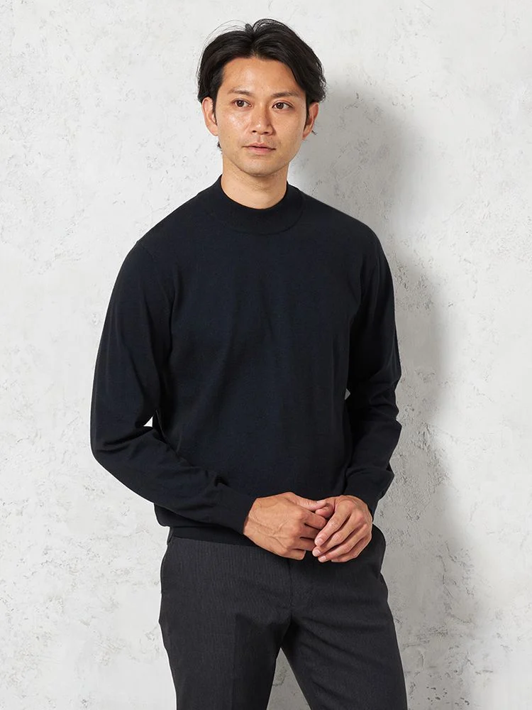 【ウール100%】梳毛モックネックセーターカジュアルインナー無地リッケンバッカーブラック秋冬