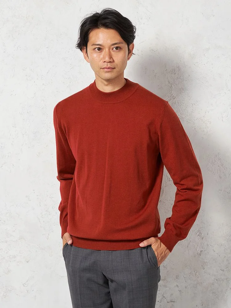 【ウォッシャブル】長袖ニット ファイブミックス モックネック カジュアルインナー 無地 リッケンバッカーブラック 秋冬(オレンジ)
