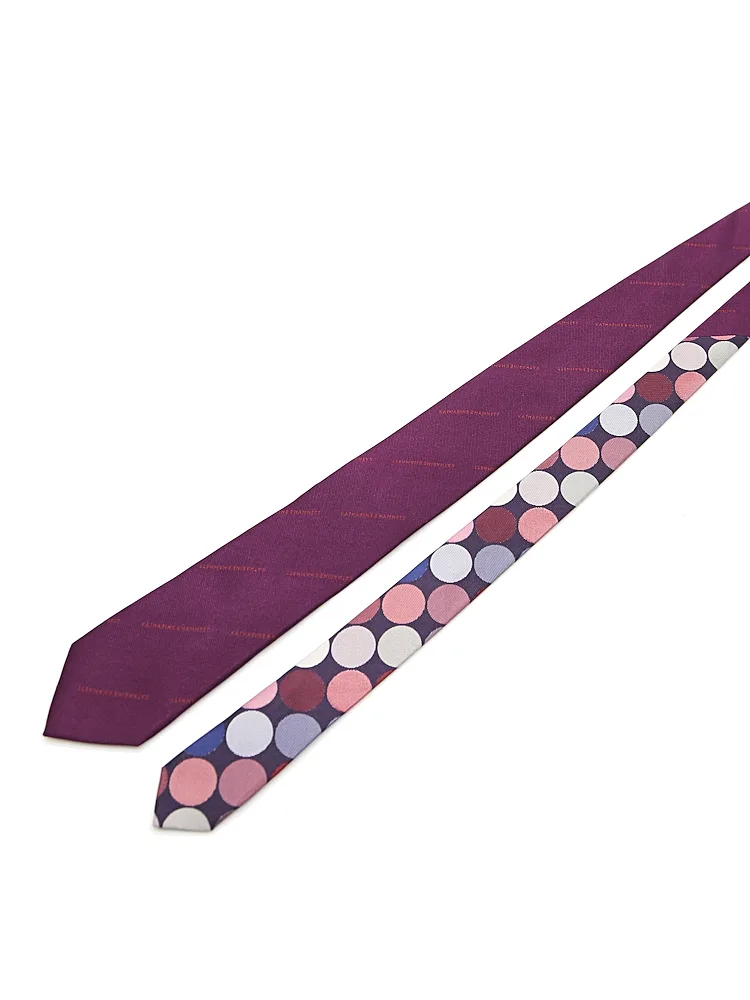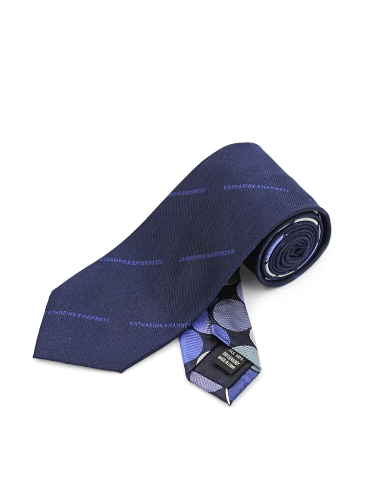 【KATHARINE E HAMNETT-キャサリン・イー・ハムネット-】クレリックネクタイ レギュラー シルク100% ロゴストライプ×ドット 秋冬(ネイビー)