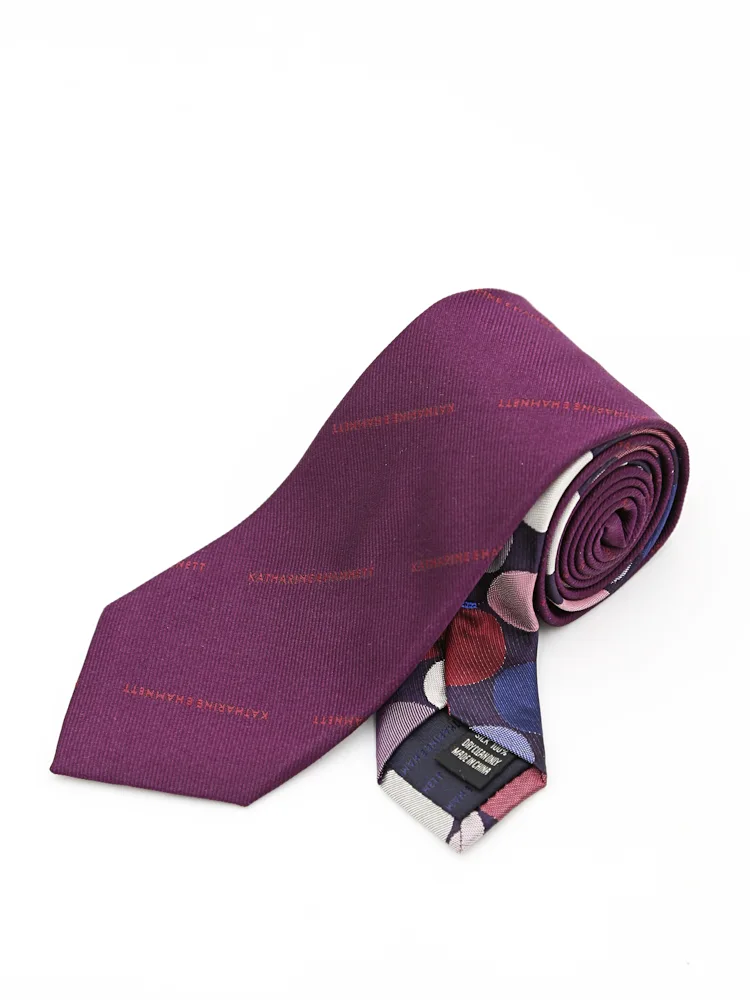 【KATHARINE E HAMNETT-キャサリン・イー・ハムネット-】のシルク100%、モダンクレリックネクタイ。