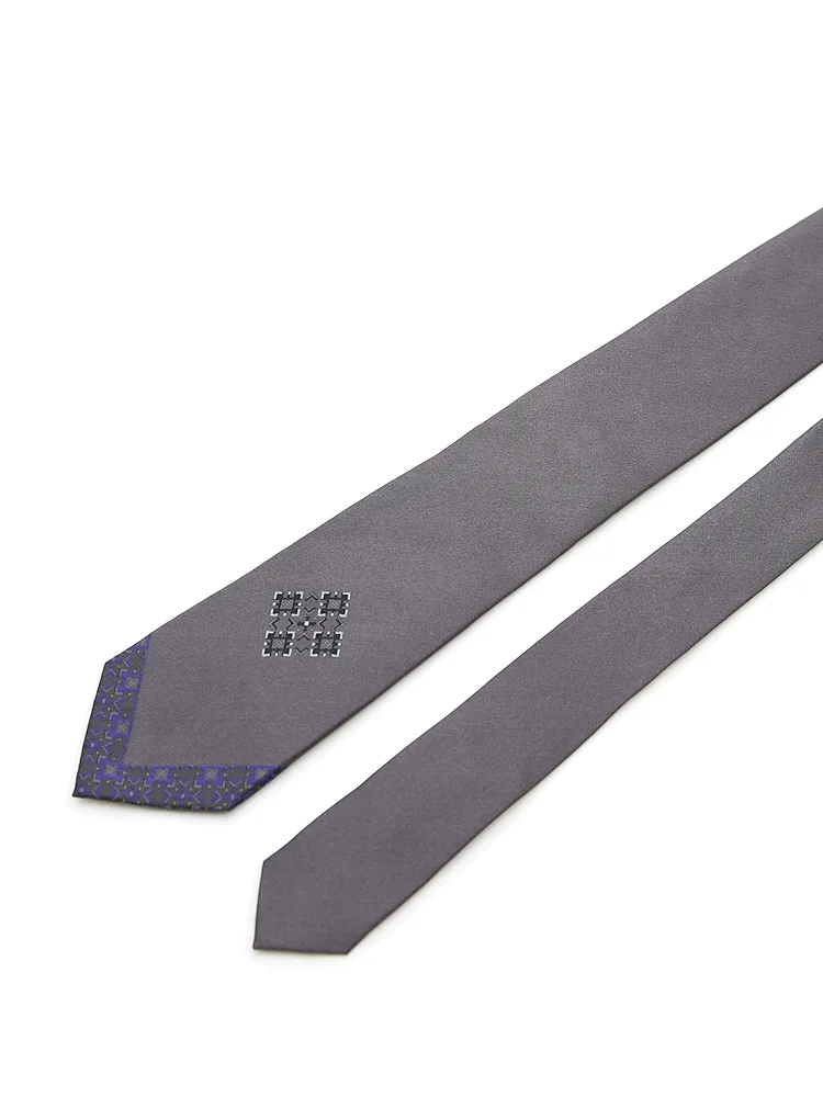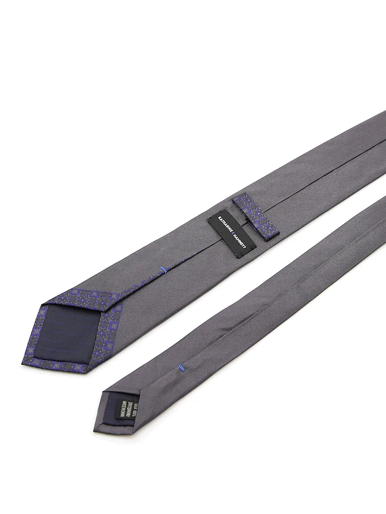 【KATHARINE E HAMNETT-キャサリン・イー・ハムネット-】ネクタイ レギュラー シルク100% パネルデザイン 秋冬(M.グレー)